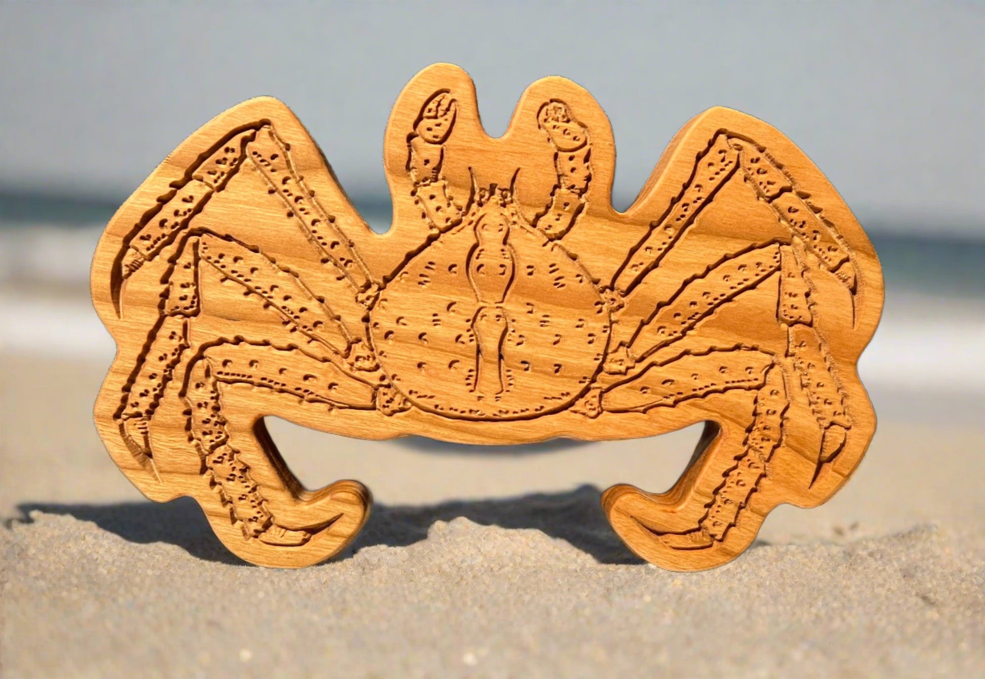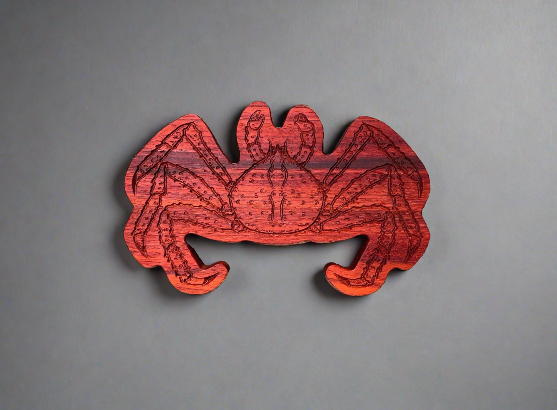 Made from durable hardwood, this Crab Trivet doubles as a wall hanging decoration and helps protect your kitchen surfaces from hot pots and pans. With its detailed design, it adds both functionality and style to your kitchen. Each trivet will vary in color and wood grain pattern because of its unique natural properties. They are all coated with a food grade mineral oil. Trivet thickness varies slightly but are all around 3/4" thick. Trivet roughly measures 9" X 5 3/4". Some variation in color may happen due to sapwood/heartwood, these are natural occurrences and may or may not be in your order. We do strive to find wood with unique grain and color variations.