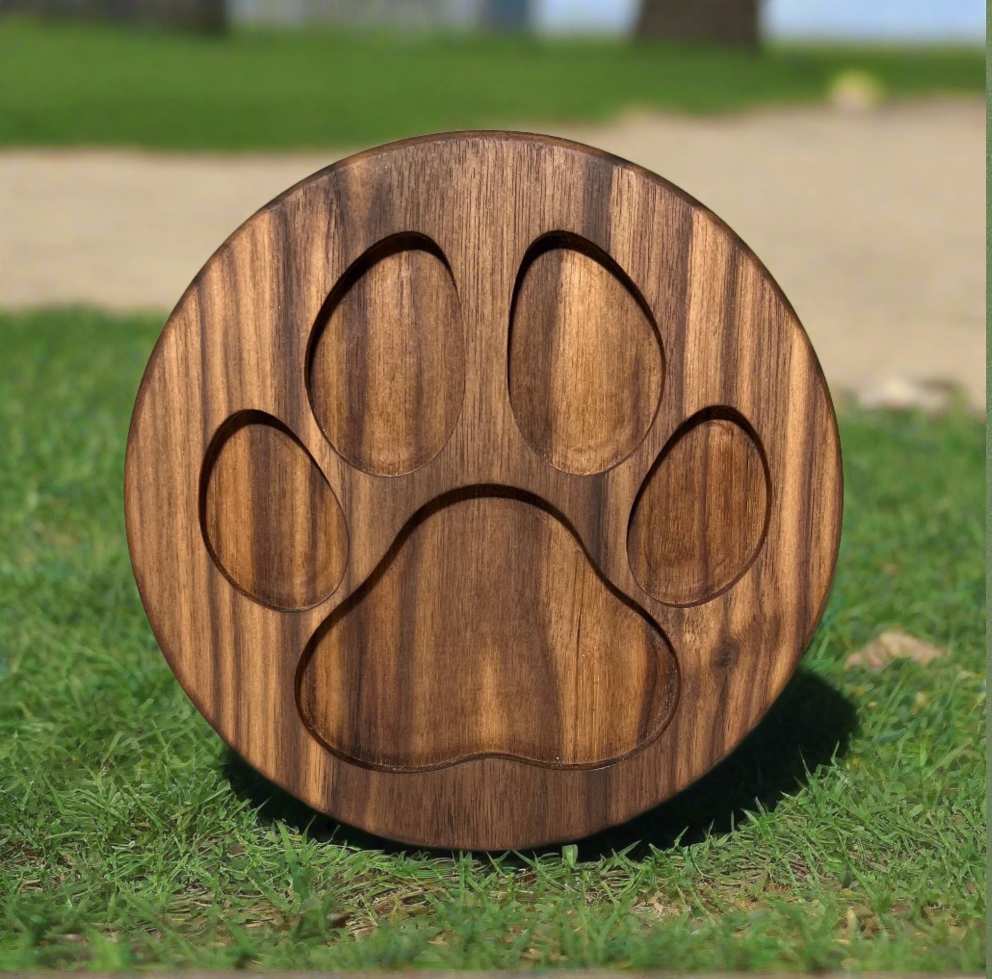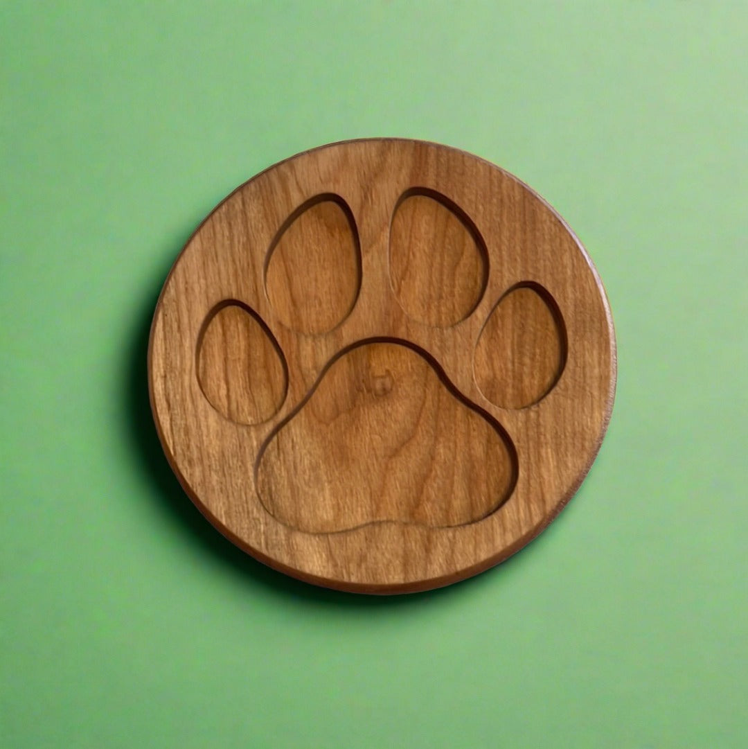 Made from durable hardwood, this Paw Trivet doubles as a wall hanging decoration and helps protect your kitchen surfaces from hot pots and pans. With its detailed design, it adds both functionality and style to your kitchen. Each trivet will vary in color and wood grain pattern because of its unique natural properties. They are all coated with a food grade mineral oil. Trivet thickness varies slightly but are all around 3/4" thick. Trivet roughly measures 6" X 6".